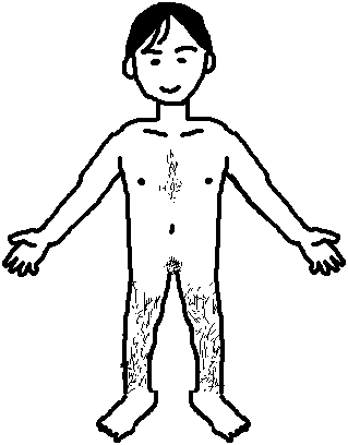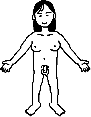 効果的に行うには、この絵に服を着せたものを数体つくり、それぞれを子どもたちに見せながら女と男に分けてもらい、そのあとで服を脱がせてもう一度同じように分けてもらうという方法をとるとよいでしょう。